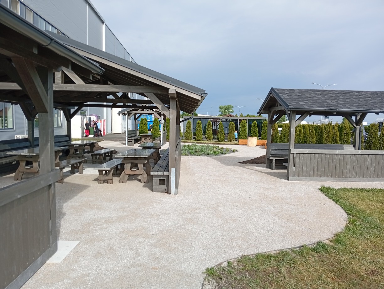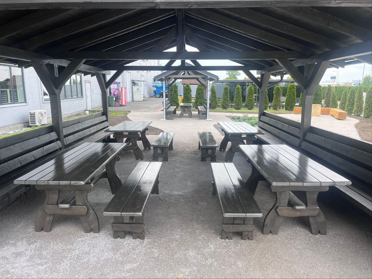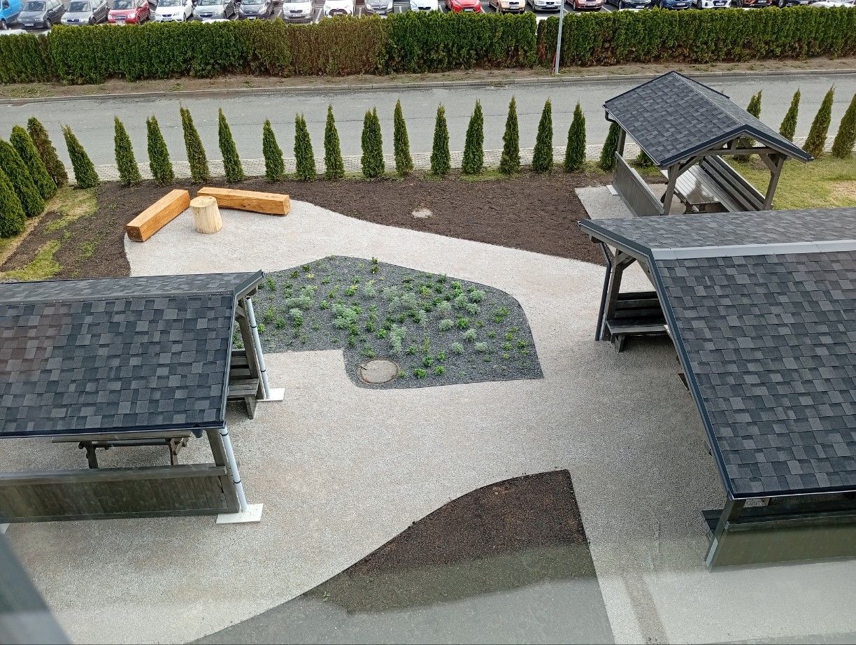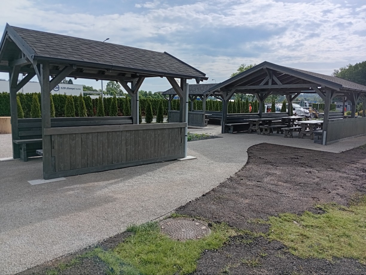 Odpočinková zóna vznikla přímo před administrativní budovou v těsné blízkosti naší kantýny. Díky tomu si mohou naši zaměstnanci v teplejších dnech vychutnat oběd, kávu nebo si jen odpočinout venku, mimo pracovní shon.